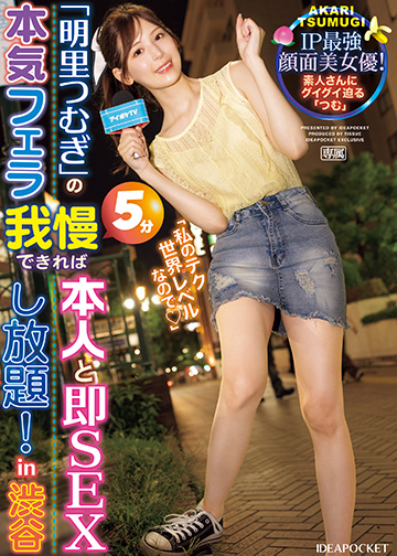 「明里つむぎ」の本気フェラ5分我慢できれば本人と即SEXし放題!in 渋谷